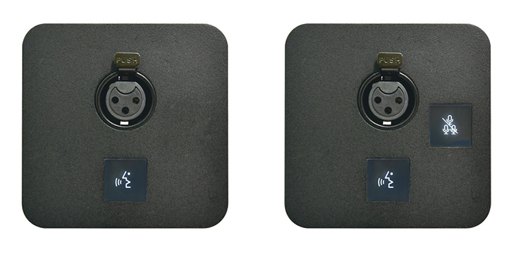 - 50IU-FM02 隨附感應式電子全靜音控制開關,可控制所有麥克風為靜音